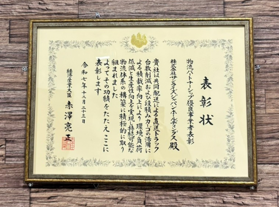 グリーン物流パートナーシップ表彰にて表彰状を頂きました